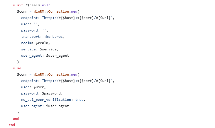 and I found this connection_initialization function, which is the one connecting to the server, where I found the WinRM library referenced with its connection function