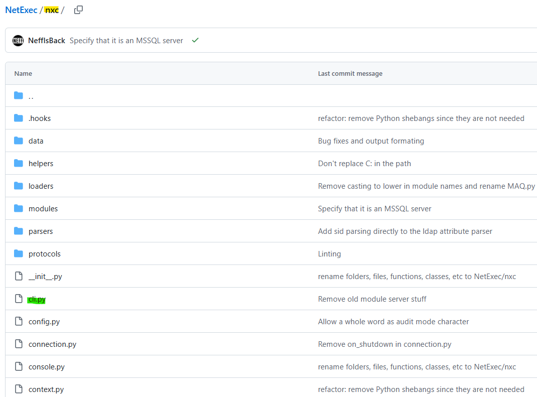 Everything is in the nxc folder, where we also have the argument parser for netexec in a separate file cli.py