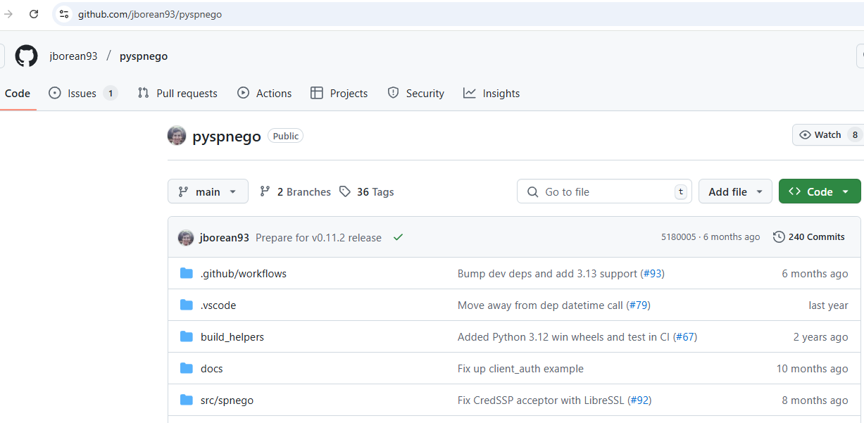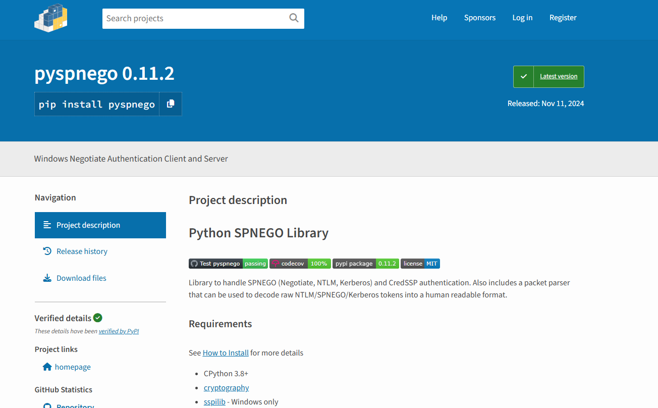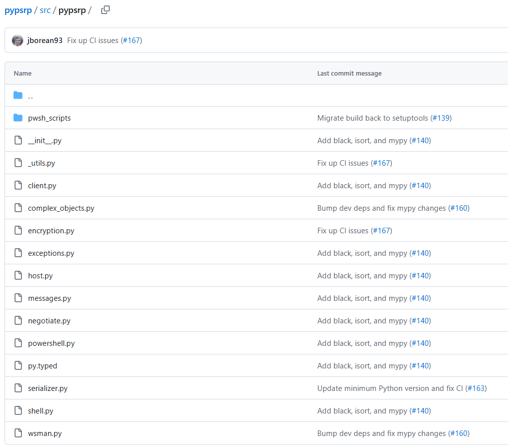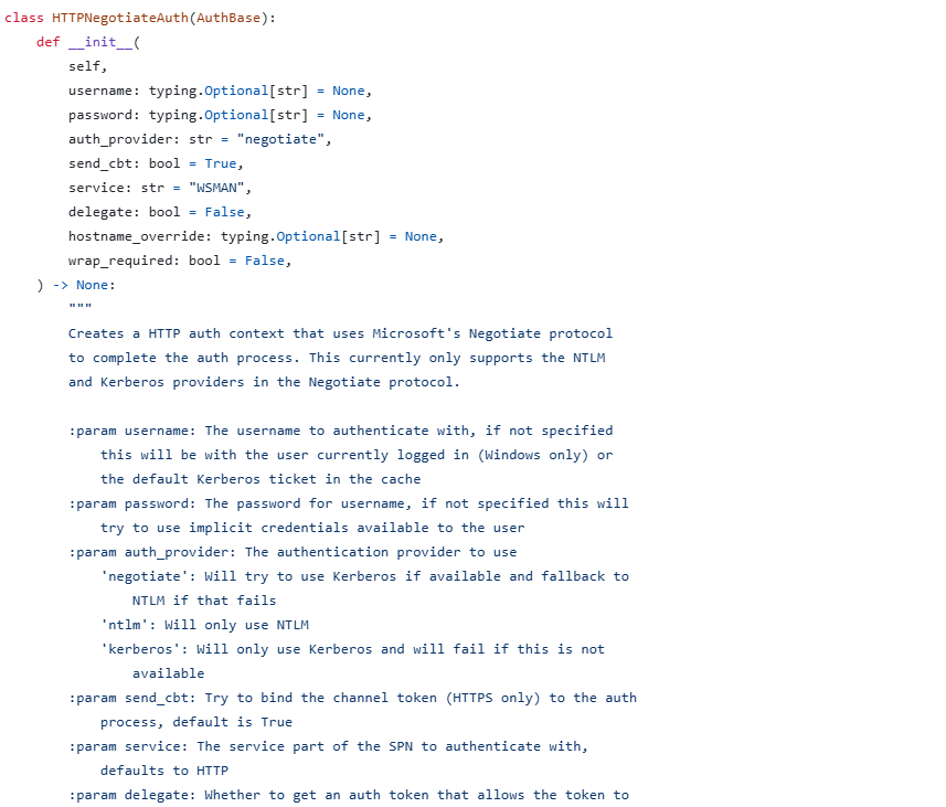 And more importantly, the spnego library, which is the library running under the hood of pypsrp for the actual NTLM authentication.