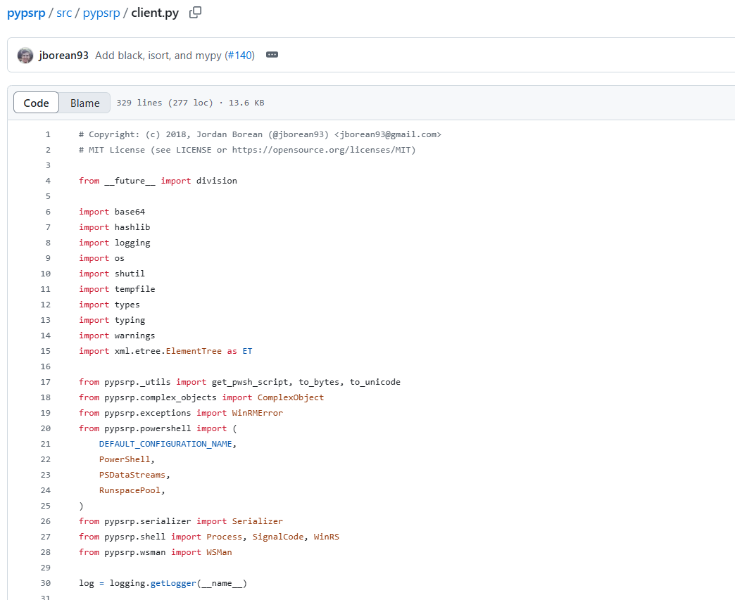 we can see that those are imported from the pypsrp library, so as the developer texted me, the core authentication does rely on the external library pypsrp.
