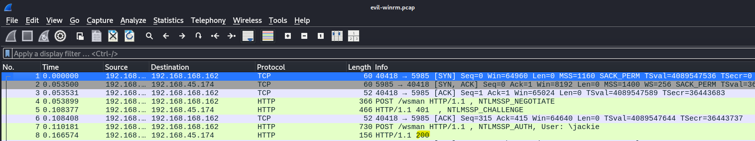What’s interesting is that evil-winrm and the script I created which uses the same libs used by evil-winrm that’s why we got the same results 200 response from the server after the 3 stages on the NTLM authentication.