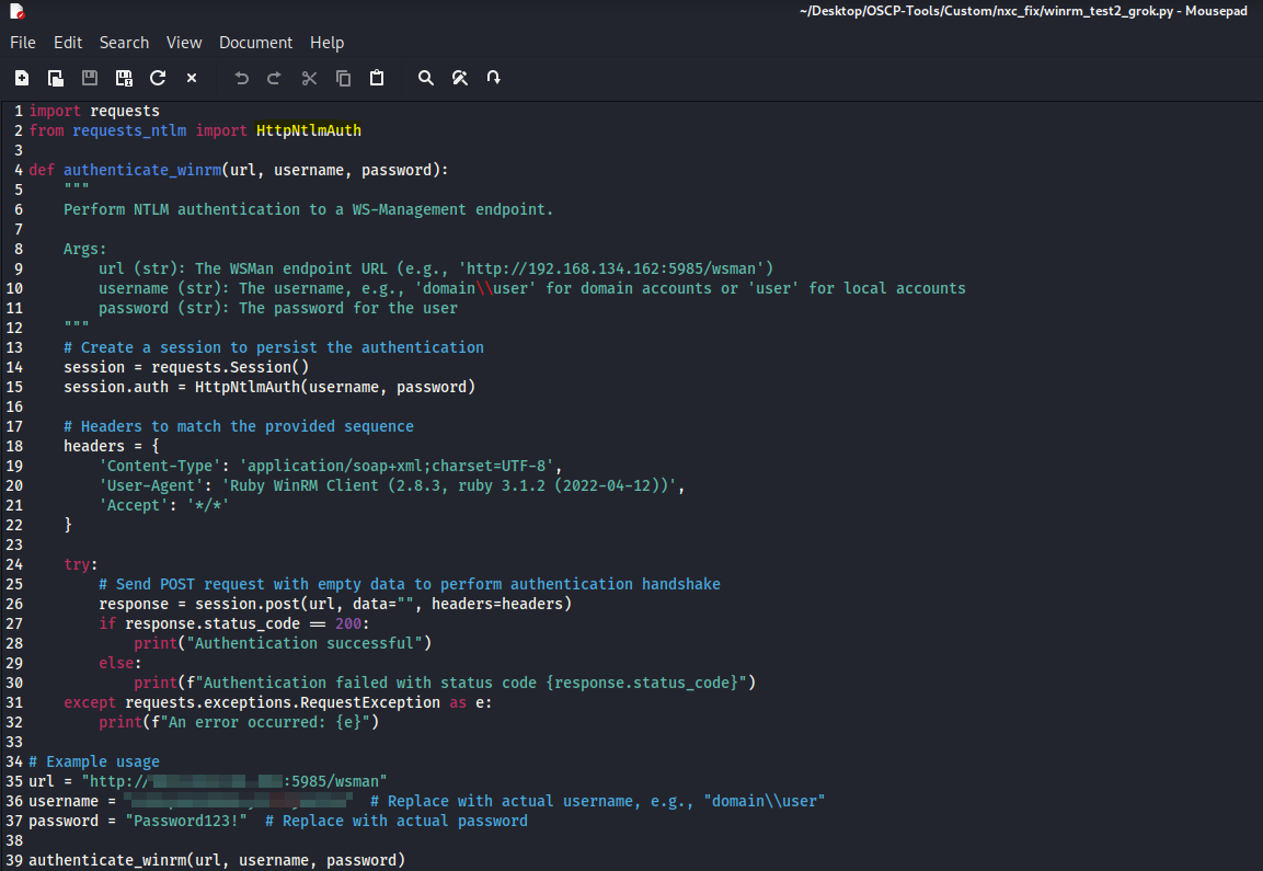 Now after getting the authentication to work using ruby, I wanted a python script so that I can fix the netexec script.