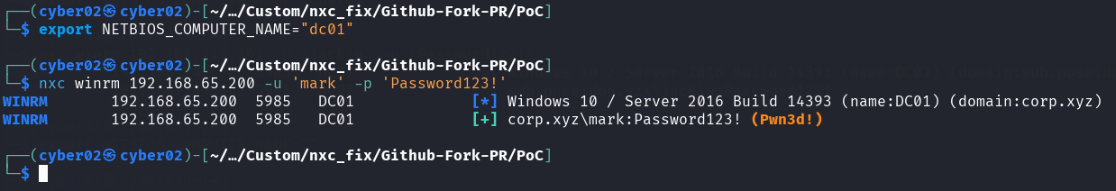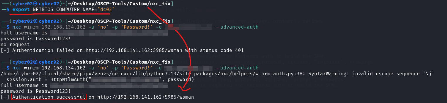 So even netexec default authentication mechanism without any external script rely on the environment variable for that, which makes sense since it uses the same ntlm-auth library, so to permanently fix netexec, all we need to do is set the environment variable to the hostname of the target just before any instance of pypsrp, while authenticating