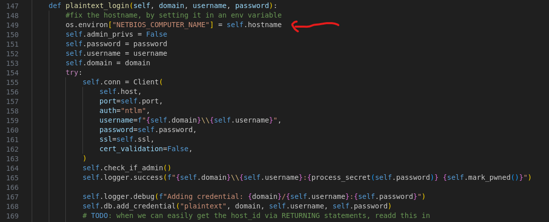 So without the need of manually setting the env variable NETBIOS_COMPUTER_NAME in each terminal, netexec automatically sets it to the server hostname that is already in its variable self.hostname.