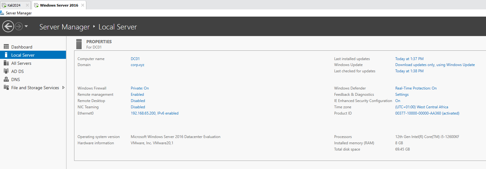 Server: Windows Server 2016 (DC01)