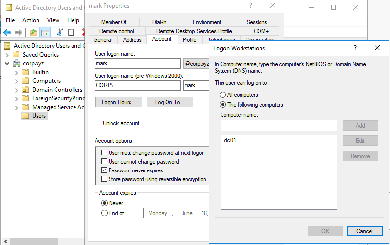 Restriction: mark is restricted to log on only to DC01.