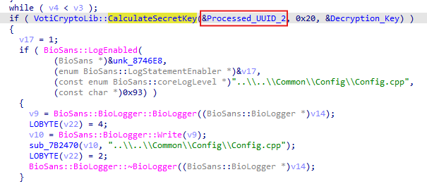 Loading the config file, it is obviously encrypted. After some initial poking around, I realized the decryption key wasn’t hardcoded; it was being generated dynamically based on the hardware UUID of the motherboard.