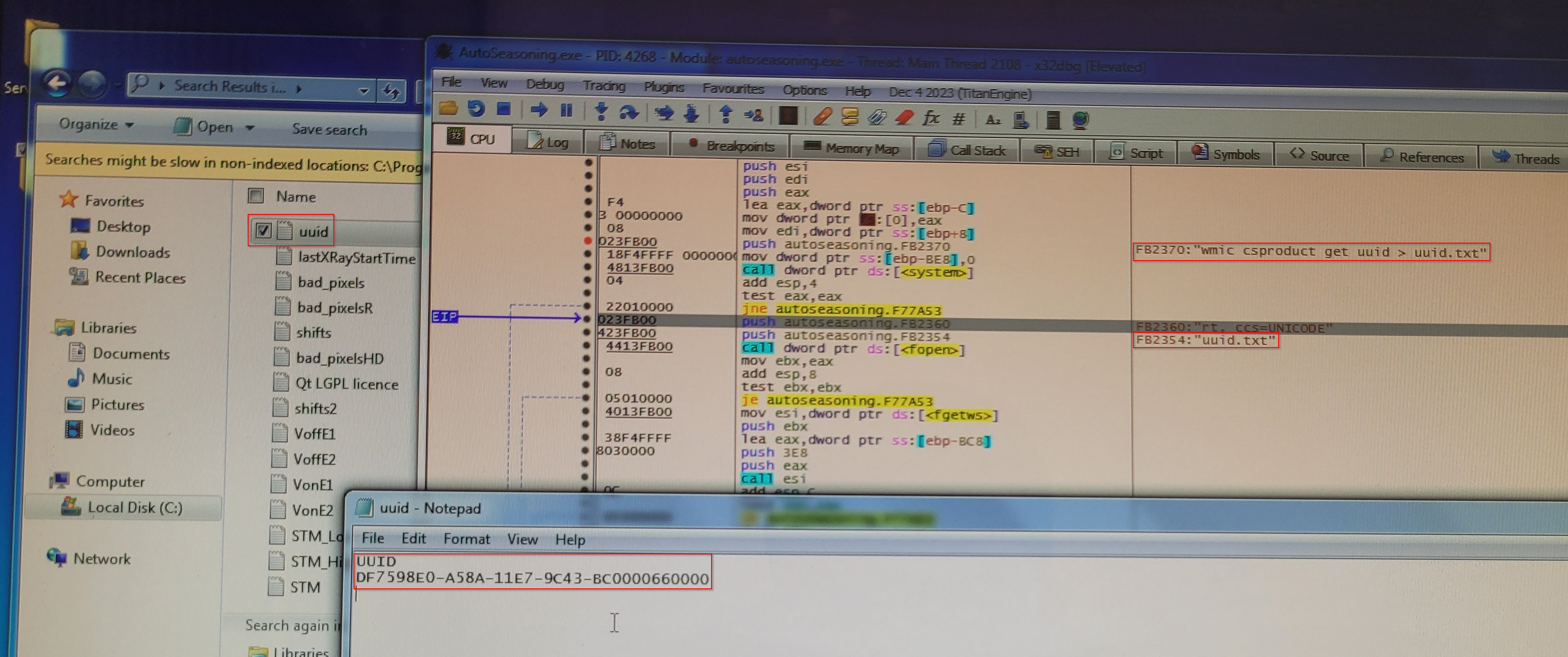I pulled the main executable off the drive and loaded it into IDA Pro (Interactive Disassembler). My goal was to find how the software was fetching the UUID.